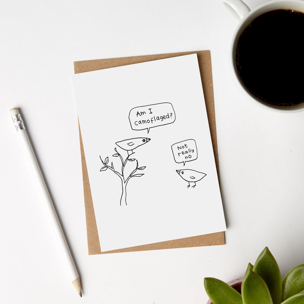 A little bird card perfect for your mates and lovely loved ones who definitely don't blend in.