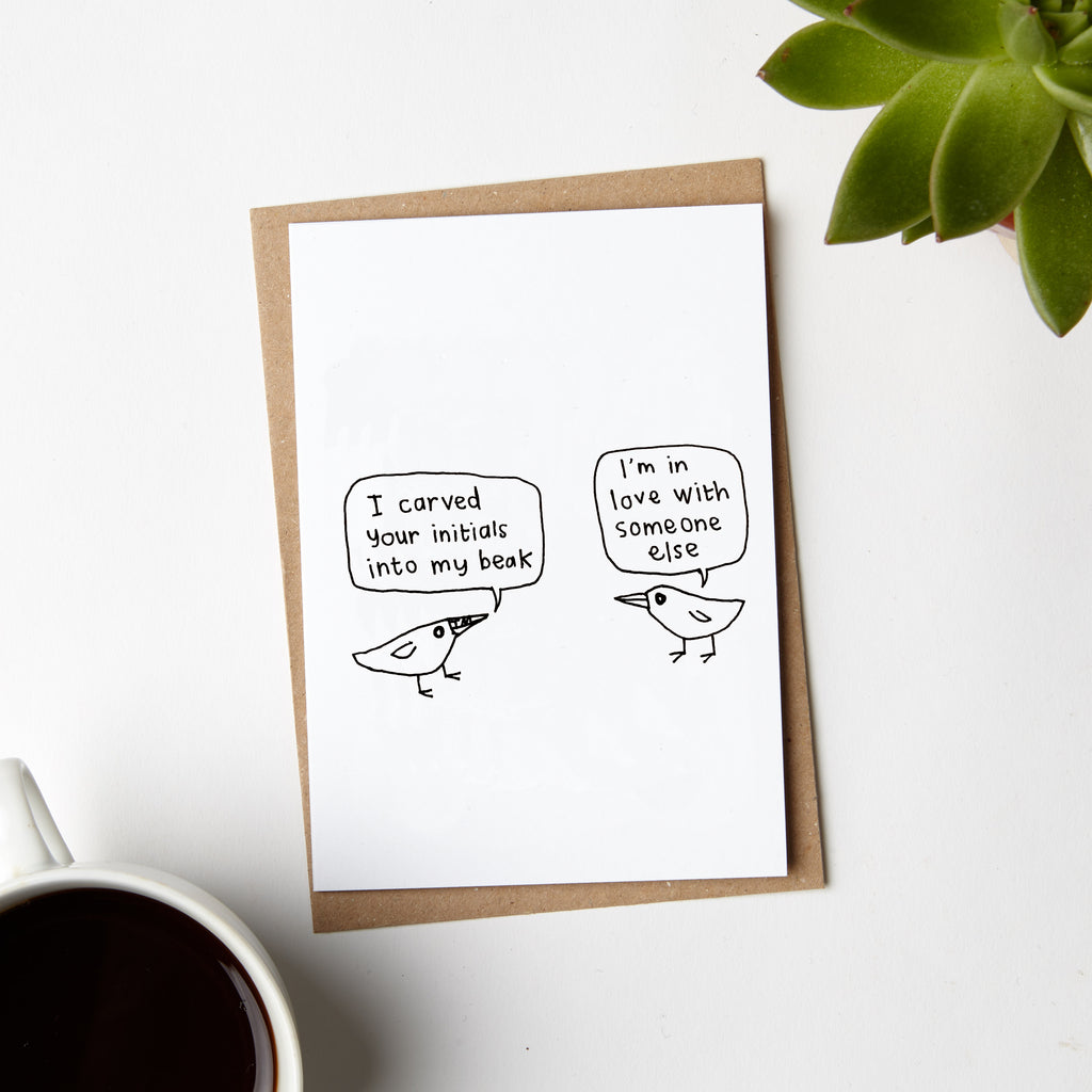 Because nothing says romance like carving your initials into a tree, or your own beak. Perfect for that special someone who's either the love of your life or your partner in crime. Great for anniversaries, Valentine's Day, or admitting you've been a bit of a love bird on the side.